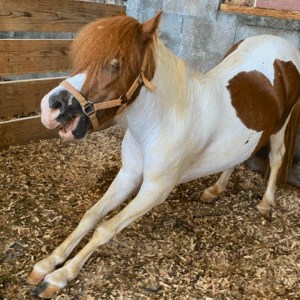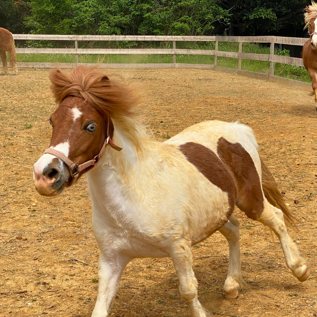 目がとても綺麗な青色のアイラは、特に子ども達からの人気者!親友のジブシーと一緒に過ごすのが日課で、とても人懐こくてスタッフを困らせることもない、優秀なお馬さんです。