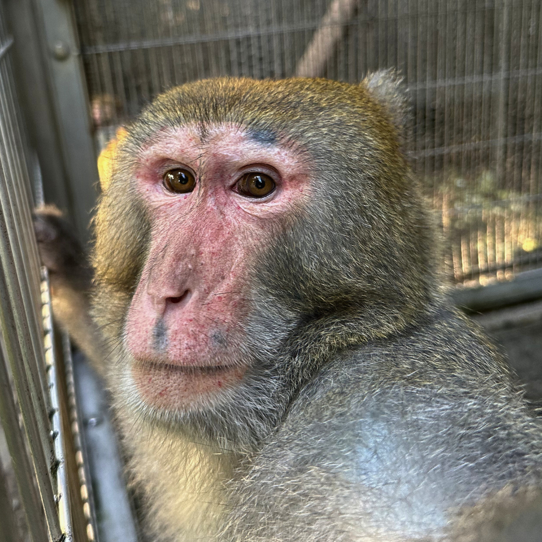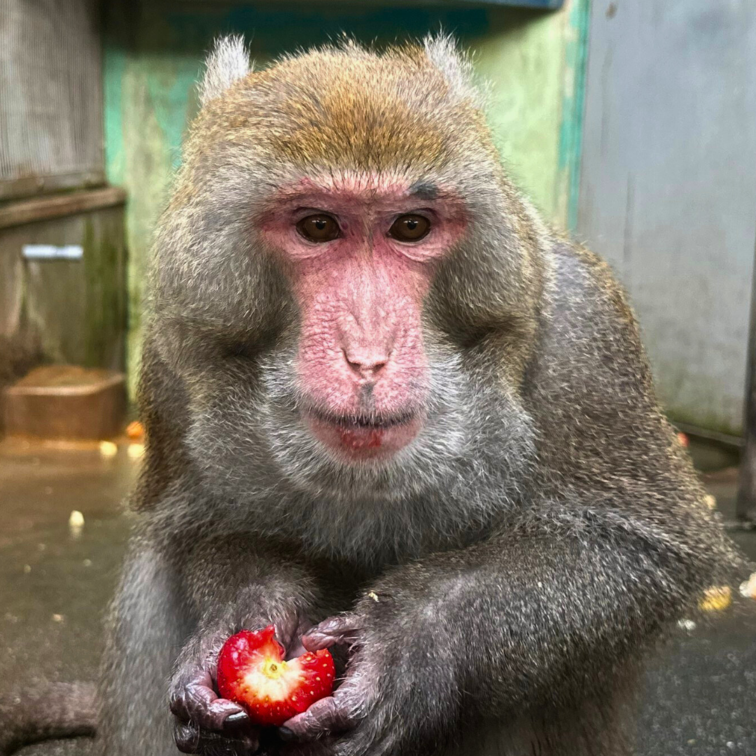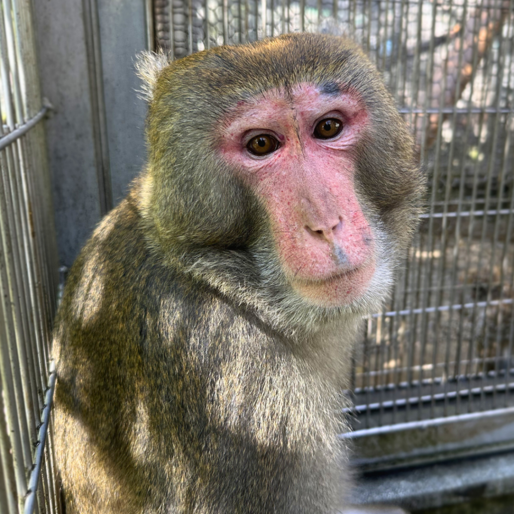 タイワンザルのキャロルは、日本モンキーセンターでは最後の1頭で、現在はアカゲザルと仲良く暮らしています。特に、マーニのことがお気に入りのようです(笑)