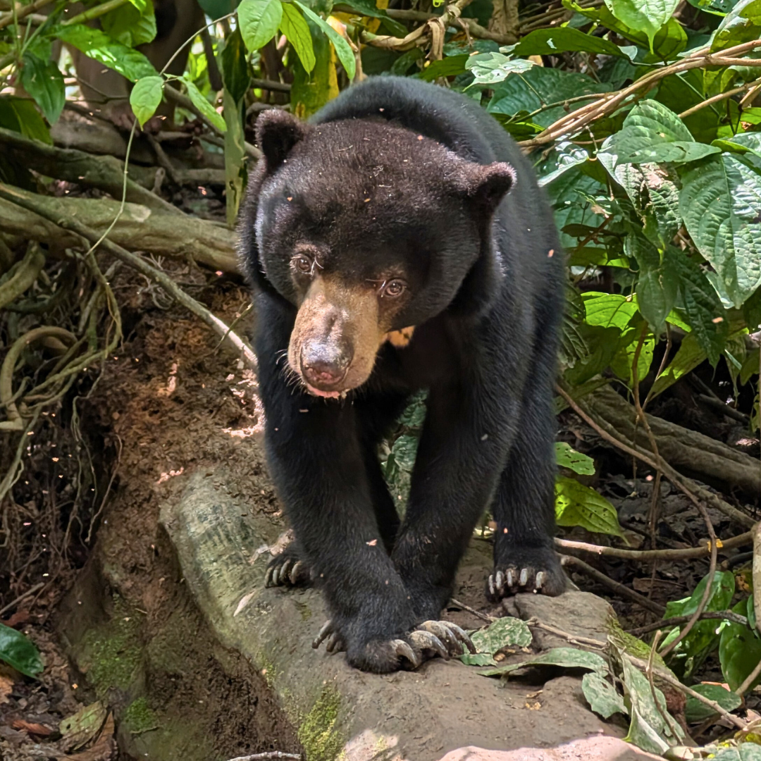 カラ(Kala)は、BSBCCで一番マイペースなマレーグマ。ひとりでいることを好み、何日も連続で寝室に戻らず森で過ごすこともあります!とてもマイペースな女の子。最近は新しいエリアにお引越しして、枝をアレンジして巣を作ったり、丸太に寝そべって日向ぼっこしたりして、ますますのんびりな一面を見せてくれています!(*保護日は1月21日、生まれ年は2015年です)