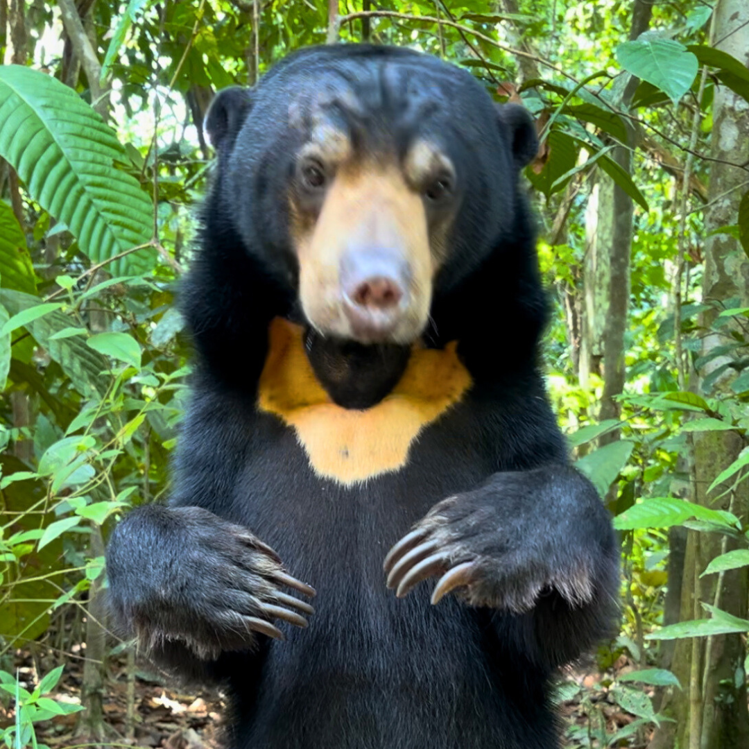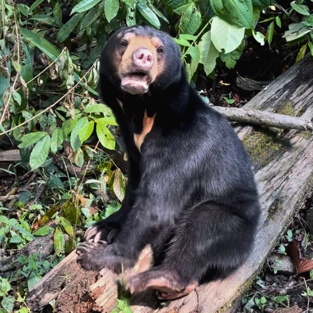 マロ眉とピンクのお鼻が特徴的なスー(Soo)。茂みの中からガサガサっと出てきて、いつも一番に挨拶をしてくれます!最近では木の根本がお気に入りスポットとなって、日中はよくそこで涼んでいます!保護日は9月8日、生まれ年は2014年です。