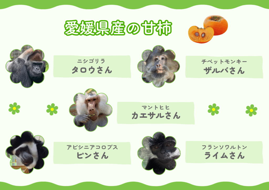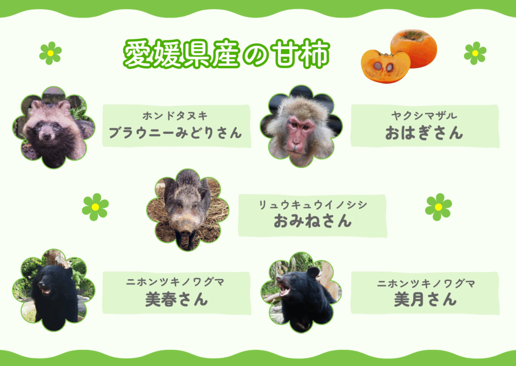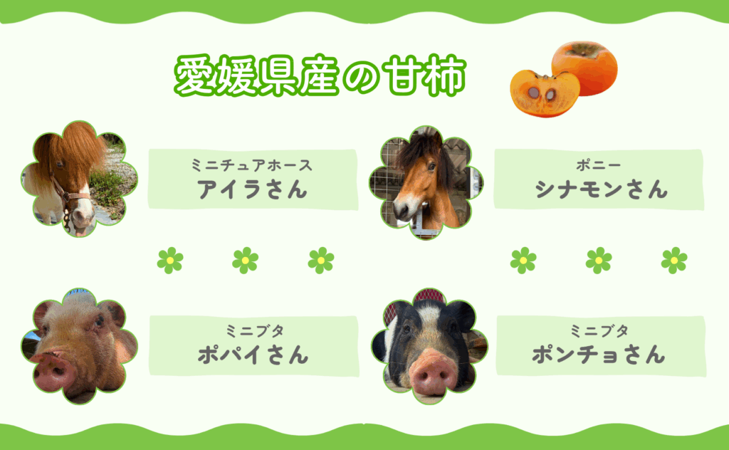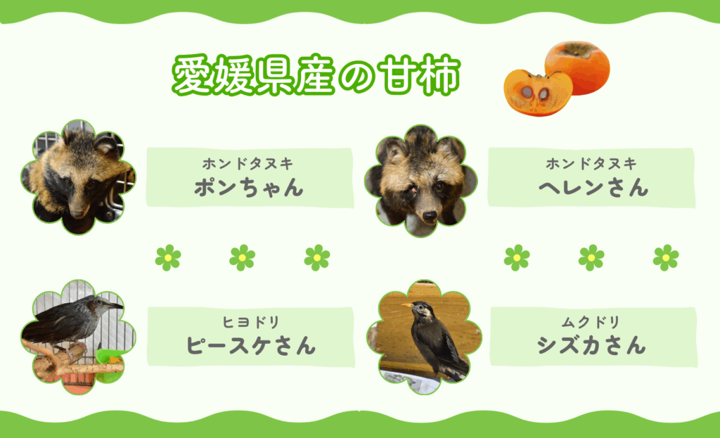 今月のお食事は、4種類ご用意しております。愛媛県産の甘柿、千葉県産のニンジン、北海道産のサツマイモ、宇和島産のマメアジです🥕🍠🎣💕