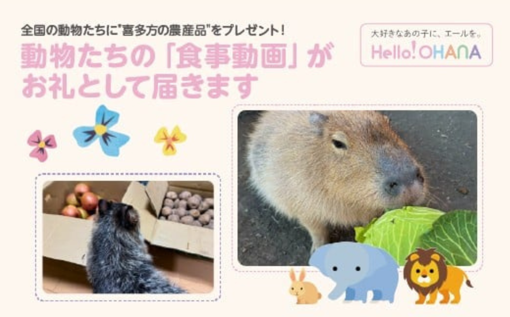 世界中の動物たちの応援サイト「Hello!OHANA(ハローオハナ)」は、 この度、福島県喜多方市と提携し、ふるさと納税を通じて【喜多方市の農産品】を、動物園や保護施設で暮らす動物たちへのプレゼントとしてお届けできることになりました。
