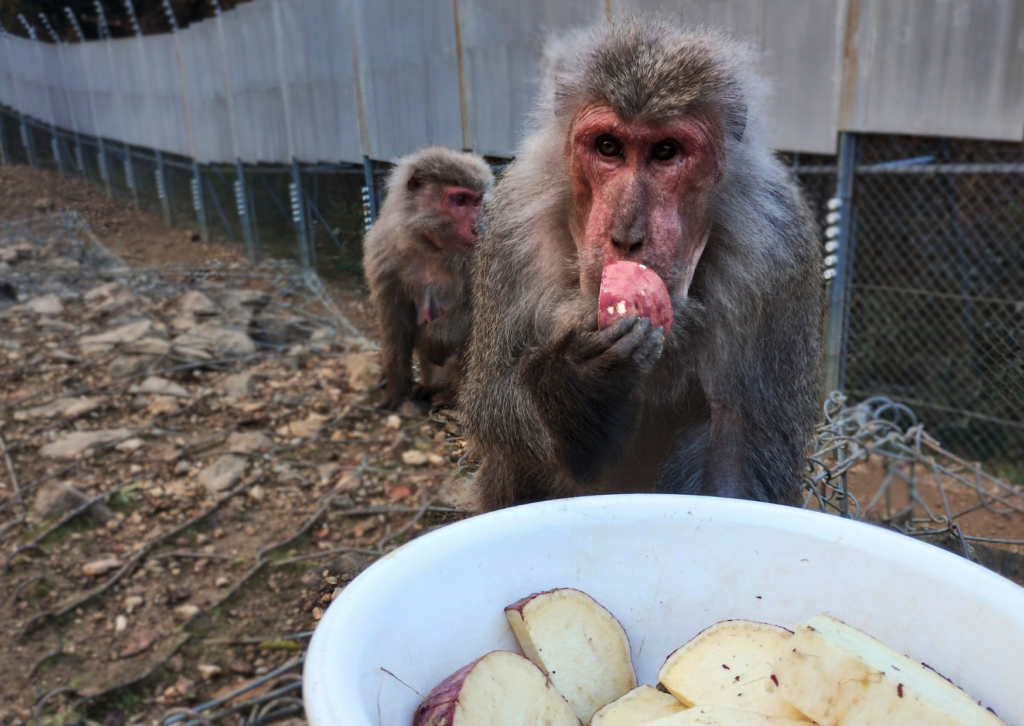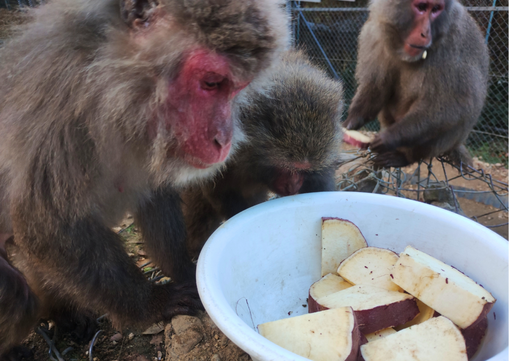 今回代表してプレゼントを受け取ってくださったのは、モンキーバレイの皆さんです👏✨なんといっても、お芋がとっても似合うヤクシマザル…!🍠🐒🐒