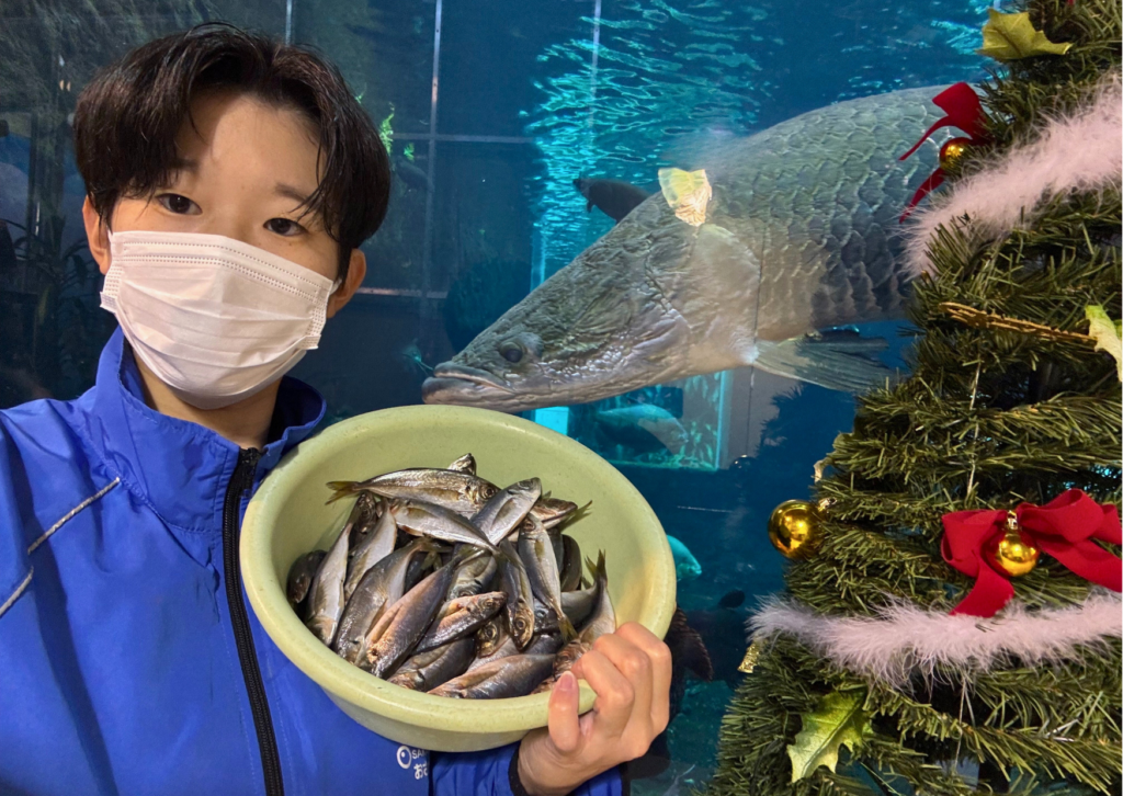 とても素敵なお受け取り写真が飼育員さんから届きましたので、皆さまにシェアさせて頂きます🙌✨クリスマスツリーとピラルクさん、よく似合いますね🤭🌲🐟~🎶