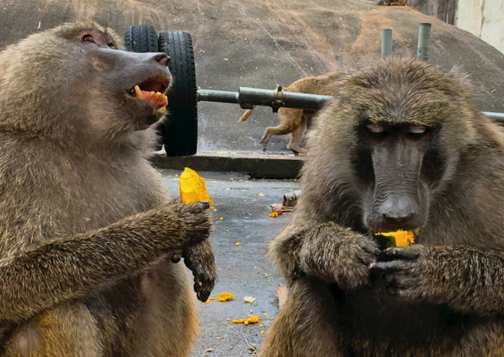 また、シエラレオネのタクガマ・チンパンジー・サンクチュアリで保護されたチンパンジーのラザーさん、トムさん、AJさん、ファイフォさんには、地元の旬の食事をプレゼントすることができました🇸🇱✨